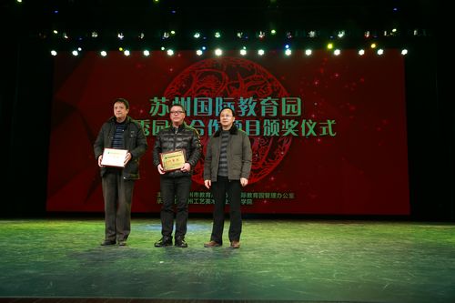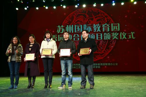 接下来,国际教育园各院校领导首先为国际教育园优秀园地合作项目进行了颁奖,来自教育园9所院校的22个园地校企合作和产学研合作项目在苏州经贸职业技术学院进行了汇报答辩和评审,最终教管办资源共享与产教合作处处长万海防先生宣布了评选结果并进行了颁奖,我院也在此次活动中获得了优秀园地产学研合作项目一等奖的好成绩。