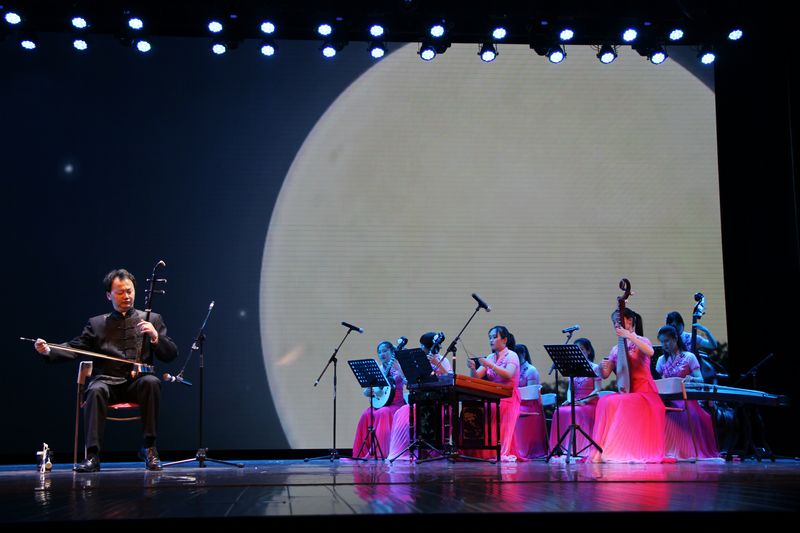 百年随园,生机盎然,为南京师范大学音乐学院的师生们提供了无尽的艺术源泉。本次音乐会以“随园梦”为主题,师生们热情洋溢的演出,淋漓尽致地表现了随园母亲的生机勃勃、宁静优雅。召唤老师指导的学生新民乐合奏 《弦舞青春》拉开演出序幕,每一个跳动的音符、每一段优美的旋律,都好似青春的热情和甜美。独唱曲《让我们舞起来》、《一杯美酒》、《怀念战友》、《七月的草原》都是对于爱的诠释,表现了对生活的热爱和深刻的爱国主义情怀,分别由著名歌唱家张娴、陈洁、蓝天翔、路琦老师演唱。《二泉映月》、《赛马》、《春天》、《可爱的玫瑰花》是较高难度的专业演奏作品。《二泉映月》、《赛马》由著名二胡演奏家召唤老师领奏;小提琴齐奏《春天》由陶捷老师领奏。二位演奏家精湛的演奏技巧和潇洒的舞台表现力让现场观众深深为之折服,赢得全场热烈掌声。舞蹈《刑场上的婚礼》、《楚腰》和《水的女儿》由舞蹈系吴凝、廖珩老师指导,分别表现了对爱情和信念的渴求,汉唐至美以及对生命之源“水”的渴望。一曲《共筑中国梦》将演出带入高潮,唱出了我们的满怀豪情、唱出了我们的美好梦想。本场音乐会是南京师范大学音乐学院精英荟萃的一场音乐会,各位领导、老师及现场观众充分褒扬了本场演出,精彩的表演和丰富的舞台效果,让观众感受到专业院校高水平的专业艺术表演能力,以不同的艺术表现形式展现出专业艺术院校师生的艺术水准。演出结束后,观众掌声如潮。