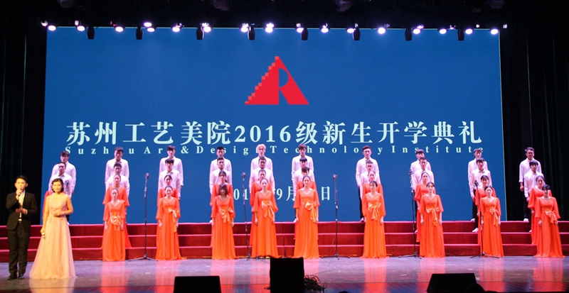 金秋9月,天高气爽,伴随着新同学们对学校的憧憬与向往,苏州工艺美术职业技术学院2016级新生开学典礼暨文艺演出于9月23日13:30和18:00分两场在演艺大厅隆重举行。学院党委书记王建良,院长廖军,党委副书记曹雪明,副院长黄海、张华、刘珽、周东华,党委委员、公共基础部主任陈俊,以及各系主任、书记、教师及来自祖国各地18个民族的1697名2016级新同学参加了开学典礼。廖院长代表学院对同学们提出了殷切希望,服装设计系徐雪漫主任、手工艺术学院赵罡主任及多位新老生代表分别上台致辞。