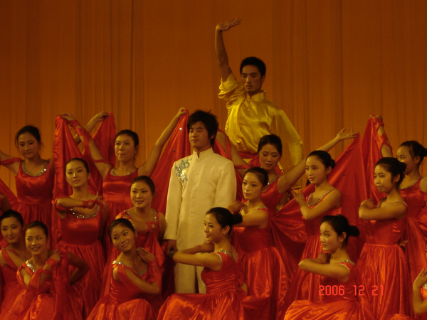 由舞蹈《春雨沙沙》开场,这个全省获奖的节目给在场的观众首先带来了耳目一新的感觉;男声独唱《雨巷》和《燃烧》、女声独唱《囚鸟》充分展示了每一位演员的演唱功底,深得观众的喜爱;闪耀的灯光下,由环艺系街舞社表演的街舞《SO HIGH》,引起了观众们精神的亢奋,掌声不断;歌曲串烧的每一支歌曲都具有不同特点,令观众如痴如醉,《在那东山顶上》像从远山上飘来一般,《动起来》又一下子燃烧起兴奋的火焰,《花样年华》猛地又把观众拉去了上海滩,《你是我的玫瑰花》让观众迷幻般见到的婀娜多姿的异域女子;拉丁舞、健美操也掀起了全场一个又一个的高潮;舞蹈《黑濮》使观众回到了原始年代;“圣女”合唱组合用她们甜美并且空灵的声音带来的一曲《好人好梦》送给了在场所有人最美好的祝福;朱誉峰同学演唱的《精忠报国》气势磅礴,加上了武术和舞蹈演员的演绎,使得舞台更加丰富。短短的一个多小时,掌声如雷鸣般地不时响彻整个演艺大厅。所有的领导和来宾都对演出做出了极高的评价,认为整台节目节目类型丰富多彩,节目水平也很高,让人有全身心地享受。