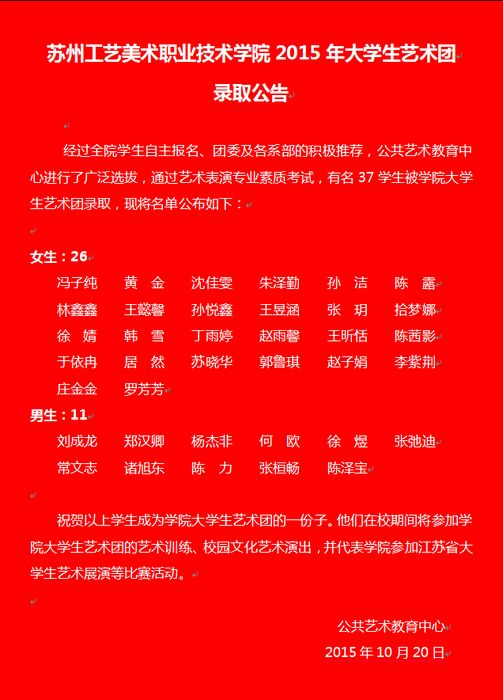 我院大学生艺术团2015年纳新招生工作圆满完成