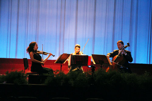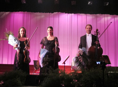 此次音乐会为大家带来的是由小提琴演奏家Iva Nikolova-Viola、中提琴演奏家Elissaveta Staneva-Viola和大提琴演奏家Bernhard Vogl-Cello带来的维也纳弦乐三重奏。“西方音乐之父”、德国著名音乐家巴赫为弦乐三重奏而作的创意曲,“乐圣”、德国著名音乐家贝多芬的小夜曲和G大调弦乐三重奏,古典主义音乐代表人物、奥地利著名音乐家舒伯特的弦乐三重奏,这些耳熟能详的经典曲目如今在现场聆听让人倍觉震憾。小提琴独奏曲目:巴赫的前奏曲和意大利著名小提琴演奏家和作曲家帕格尼尼的Paisielo主题变奏曲让大家完全沉浸在音乐的海洋中,久久无法回过神来。余音绕梁,尽管演出只有一个多小时,但三位大师精彩的演出为在场师生们呈现了一场完美的视听盛宴。
