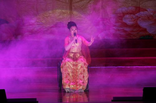 此外,无臂书法家赵梅泉和在汶川地震高度致残的素林满怀感恩之心,用嘴挥笔现场表演书法绘画,全场观众报以热烈掌声;该团保留舞蹈《千手观音》,再现了该节目在春节联欢晚会的精彩,现场观众全体起立,爆发雷鸣般的掌声;中国第一位盲人小号手于宏图,不但用娴熟的小号技巧演绎了《西班牙斗牛士》、《卡门序曲》,还为现场观众倾情演唱了《向天再借五百年》等歌曲,并且以自身超强的现场互动能力,以即兴点歌的形式和现场观众进行零距离沟通,同学们的参与度极高,对演员的表演表现出高度认可,在一唱众和的演唱互动过程中,让同学们感受到自强自信,在逆境中奋进的精神,意识到关注弱势群体、呼唤和谐善良的行为就表现在生活的点滴瞬间,演出现场激情高涨、一片祥和,精彩的演出在《和谐中国》的歌曲中缓缓谢幕。