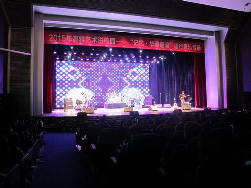 为丰富校园文化生活,提高学生文化艺术素养,11月24日晚六点半,苏州工艺美院2015年下半年高雅艺术进校园活动已经开始,此次特别邀请到江苏省演艺集团飞扬流行乐团来到我院,在学院演艺中心上演了《记忆·华语摇滚》流行音乐专场,精彩的表演、经典的歌曲,为广大师生带来了一场视觉盛宴。学院党委书记王建良、党委副书记曹雪明、副院长张华,以及相关系部和行政处室负责人,以及全院八百多名师生现场观看了演出。