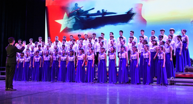 本次比赛由数字艺术系的《走向复兴》拉开帷幕,铿锵有力的歌声赞颂了祖国的国力强盛、发展繁荣,《十送红军》则以婉转悠扬的民歌曲调,怀念那些为如今的美好生活付出一切的革命先烈;环境艺术系的《保卫黄河》、《龙的传人》再现了抗战时期人民军队的英勇无畏,也表达了学生们作为中国人的自豪;视觉传达系则借《大中国》和《相亲相爱》这两首作品,唱出和谐社会中国人民的团结友爱,奋发图强;工业设计系的《祝福祖国》,让在场观众感受到了各位莘莘学子渴望建设祖国,报效祖国的坚定决心,而一首《橄榄树》又唱出了同学们对故乡的思念和无尽的爱;手工艺术学院《我和我的祖国》、《妈妈教我一支歌》,演唱动作变化多样,歌声感情真挚,唤起了全场观众共同的心声;最后是服装工程系的《在太行山上》和《四季的问候》,前行者用勇敢与执着把这份幸福追寻,后来人用感恩和忠诚将它守护,随着“也在默默为我祝福”歌声渐弱,整场比赛圆满结束。